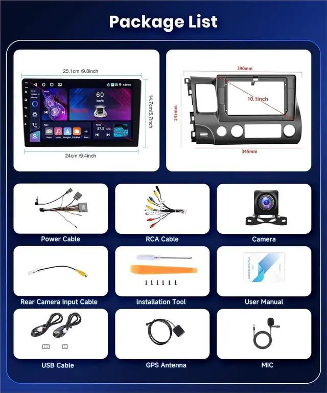 4GPS Navigation & WiFiThe car stereo for honda civic comes with online/offline mapsfeaturing a built-in offline navigation app. It also supports WiFi and online browsing, making your drive as smart and enjoyable as using an iPad