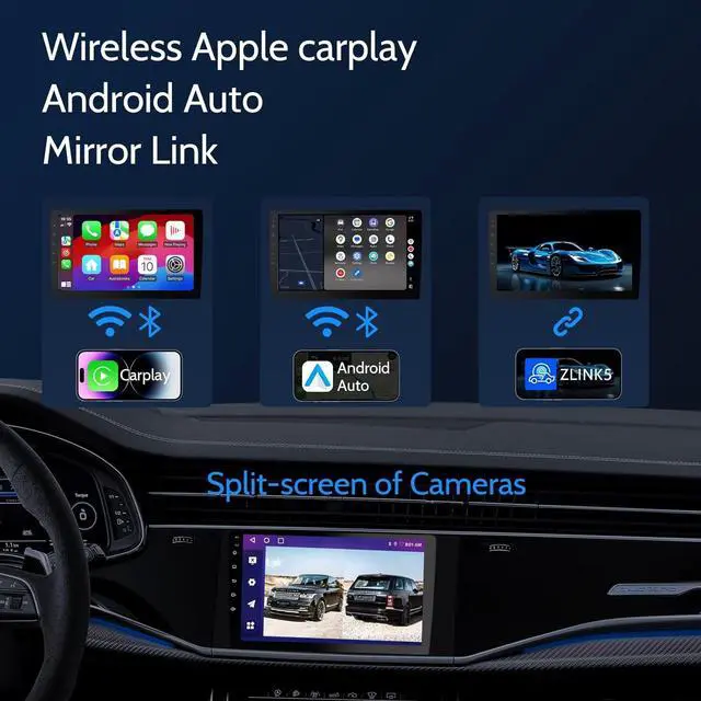 Wireless Car Stereo for A-pple Carplay & Android AutoThis Wireless Car Stereo with wireless A-pple Carplay and Android Auto, you can sync your phone' s app to a larger car screen display, Such as wirelessly handling GPS navigation, messaging, phone calls, and music. This Car play makes it safer and helps you enjoy the convenience of your phone while driving. Compatible with Android phone version 11.0 and above.