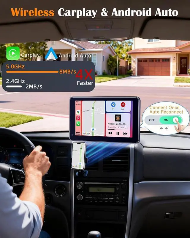 Seamless Wireless Apple CarPlay & Hands-Free Integration: Enjoy instant connectivity with Wireless Apple CarPlayno cables needed. Access music, maps, messages, and calls on a 7" HD touchscreen. Offering a hands-free, hassle-free experience that keeps you focused on the road. Perfect for daily commuters in SUVs, trucks, or older vehicles where messy cables and outdated systems are a constant headache