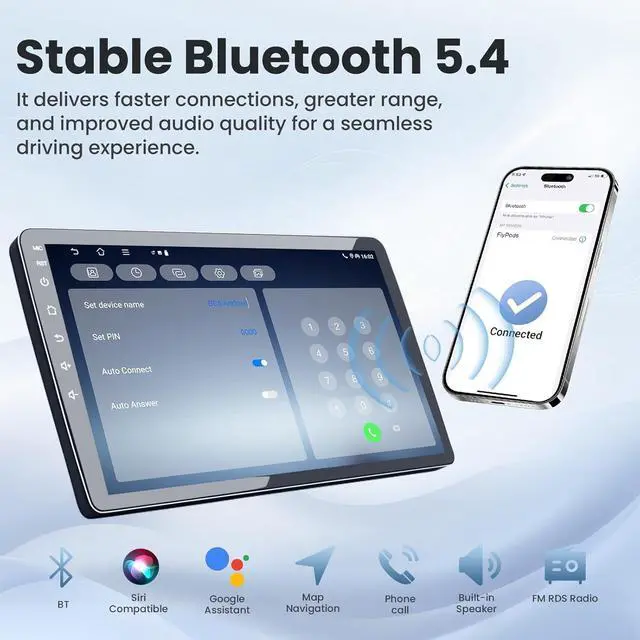Upgrade Bluetooth 5.4F eaturing Bluetooth 5.4 for quick, stable connections, you can effortlessly connect your phone for calls and music without interruptions. The high-fidelity HIFI audio ensures crystal-clear sound, while the 32EQ/DSP adjustment provides a rich, immersive listening experience whether you' re enjoying FM radio or streaming music. Upgrade your audio journey today
