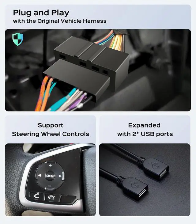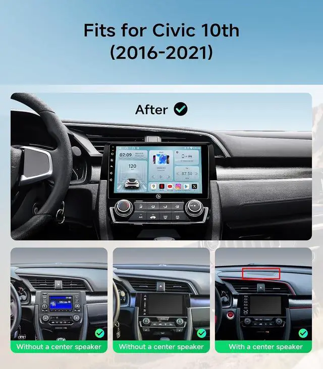 Applicable Car ModelsFor This Honda Civic car radio is a direct plug-and-play replacement for Honda Civic 2016-2021 models, requiring no dashboard modifications. Ensure compatibility by verifying the year, size, and shape of your vehicle' s center console. If unsure, contact us for assistance.