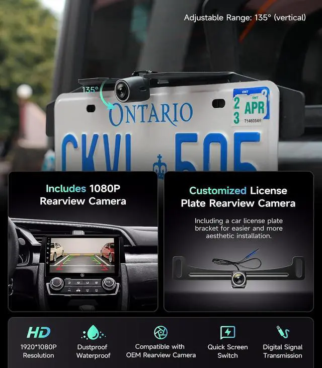 AHD 1080P Rear CameraThe IP69 waterproof AHD1080P rear camera features a 170° wide-angle optical glass lens for high-definition viewing. Its large aperture and fisheye design enhance image clarity and technology aesthetic. This aftermarket camera supports AHD signal output for 1080P display.