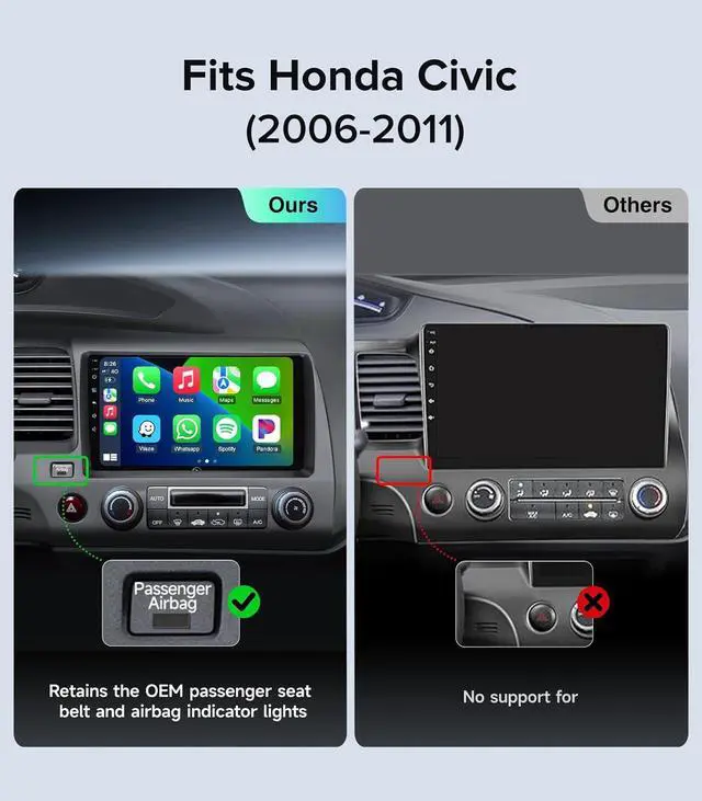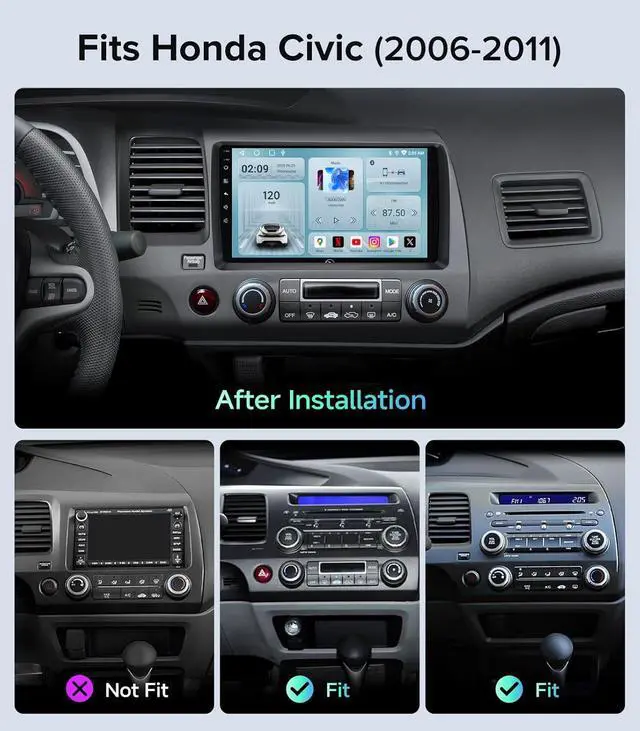 Applicable Car ModelsThis car radio is a plug-and-play device designed specifically for Honda Civic models from 2006 to 2011, requiring no dashboard modifications. Please verify your vehicles production year, dashboard size, and shape to ensure compatibility. If you have any questions, feel free to contact us for assistance.