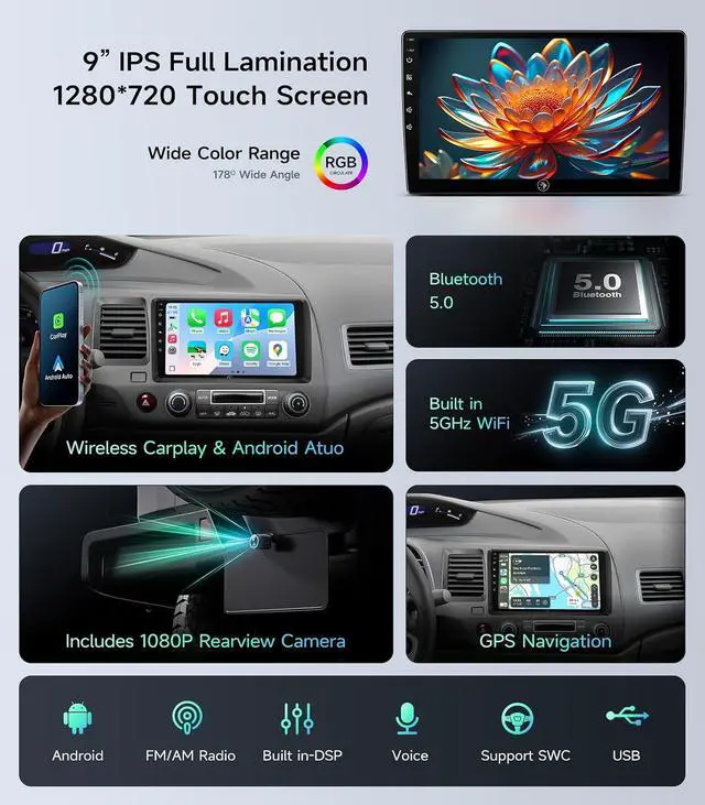 Wireless CarPlay & Android AutoSupports connecting your phone via Bluetooth or USB for easy access to navigation, messages, music, and other frequently used apps. FCC and CE certified for safety, helping you stay connected while driving.