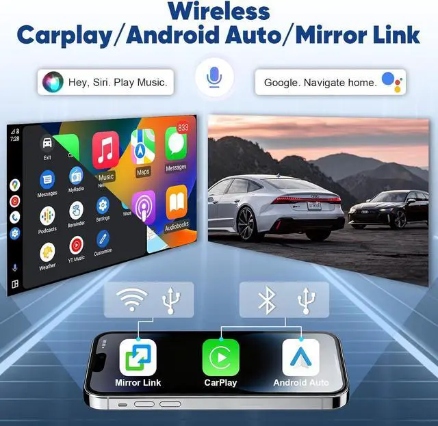 Built-in Wireless & Wired Connection with Voice Control: The upgraded Ford F150/F250/F350 radio is equipped with wireless/ wired CarPlay & Android Auto. By simply saying Hey Siri or OK Google to the Android head unit, easily access calls, navigate, or play music hands-free. Share your screen and share your fun through the mirror link