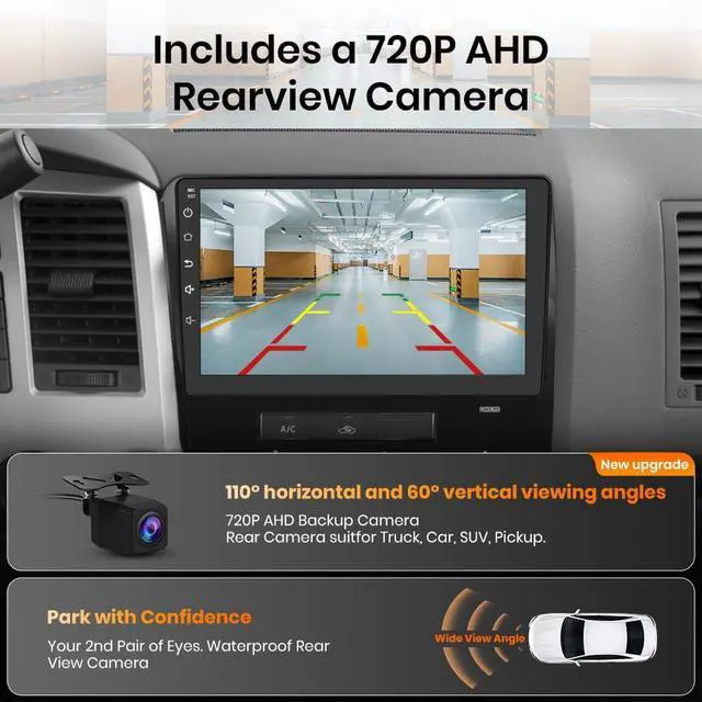 AHD Backup CameraCome with HD backup camera, displays AHD image when parking. (Note: We have equipped this car stereo with the latest AHD rearview camera, if the camera does not work, please contact us)