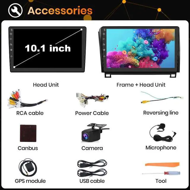 Applicable Car ModelsThis toyota tundra stereo is designed specifically for Toyota Tundra 2007 2008 2009 2010 2011 2012 2013 and for Toyota Sequoia 2008 2009 2010 2012 2013 2014 2015 2016 2017 2018. It comes with a comprehensive plug-and-play kit that includes all necessary components for installation. Retains the factory steering wheel controls, reverse camera, and factory antenna adapter.