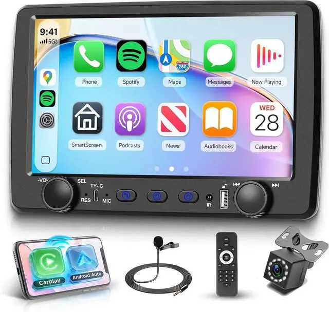 Physical Knob Control: Fully compatible with Carplay and Android Autoconnect your phone via USB cable or wireless to seamlessly access contacts, emails, notifications, maps, and music, with voice control (Siri/G00gle Assistant) for hands-free operation. Equipped with tactile physical knobs for easy adjustment of volume, mode, and settings while driving, enhancing safety and operational comfort. A perfect gift for husbands, sons, or dads on birthdays, Christmas, Fathers Day, or Thanksgiving, upgrading old car radios with modern functionality.