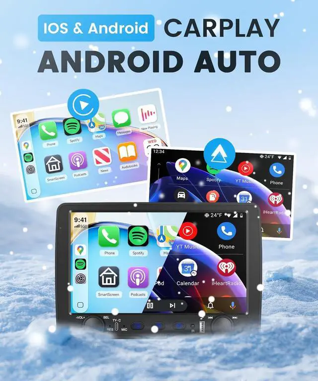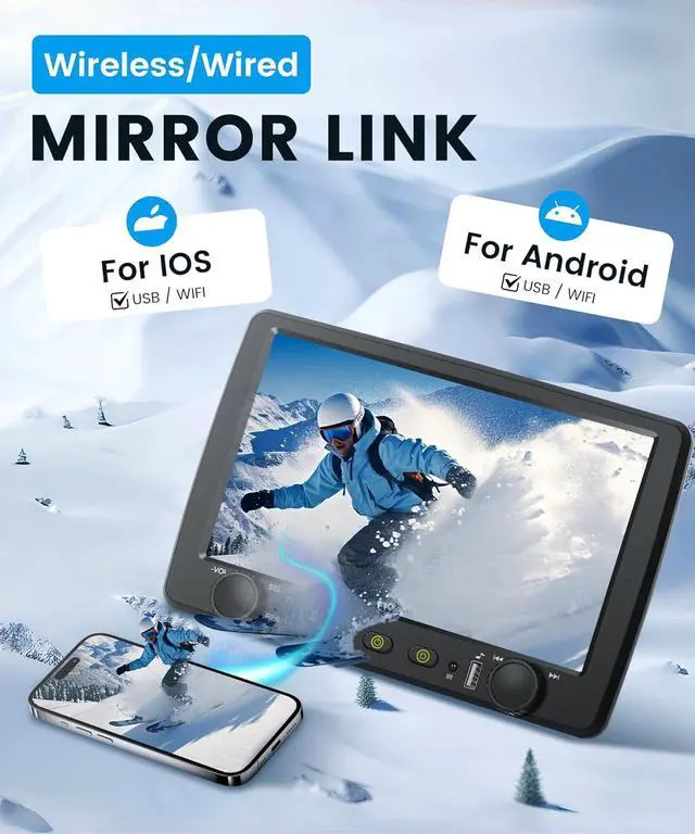 • Wireless Carplay & Android Auto + Physical Knob Control: Fully compatible with Carplay and Android Autoconnect your phone via USB cable or wireless to seamlessly access contacts, emails, notifications, maps, and music, with voice control (Siri/G00gle Assistant) for hands-free operation. Equipped with tactile physical knobs for easy adjustment of volume, mode, and settings while driving, enhancing safety and operational comfort. A perfect gift for husbands, sons, or dads on birthdays, Christmas, Fathers Day, or Thanksgiving, upgrading old car radios with modern functionality.