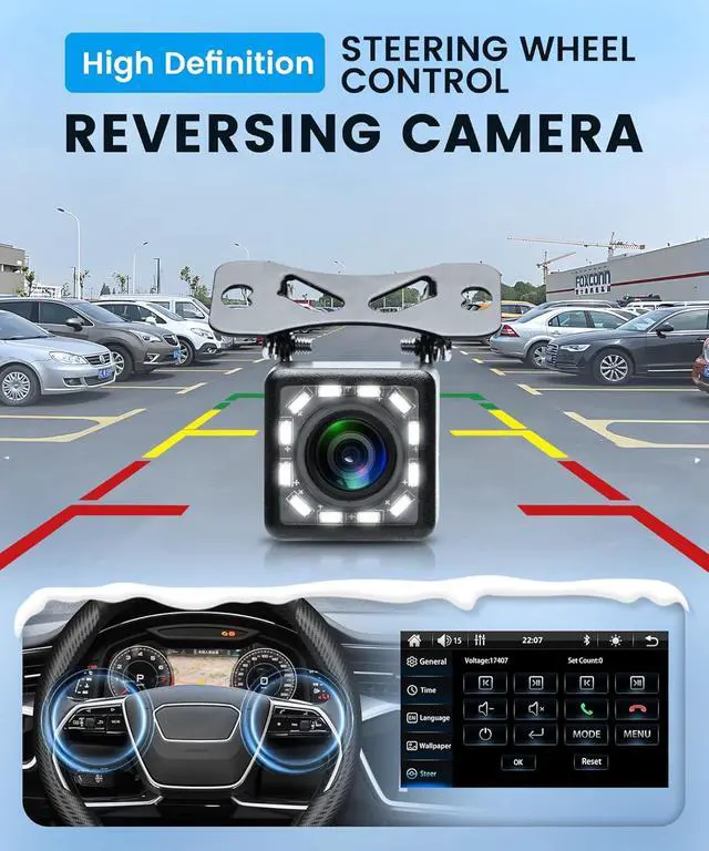 • Backup Camera & Real-Time GPS Navigation: The 9-inch HD touchscreen delivers crisp, delay-free real-time GPS navigation, with voice-guided directions through car speakers to help navigate traffic and avoid jams safely, clear parking guidelines automatically display to assist in judging distance and alignment, making reverse parking and maneuvering effortlessideal for new drivers and tight parking spac