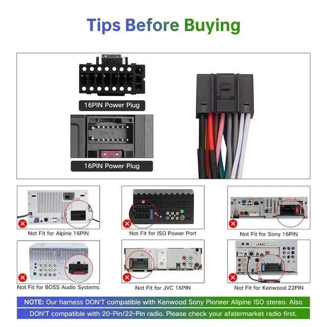 Note: The Canbus adapter equipped radio wiring harness is exclusively designed for use with 16-PIN Android car stereo system.
