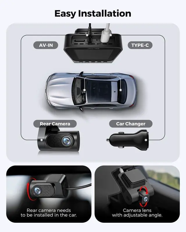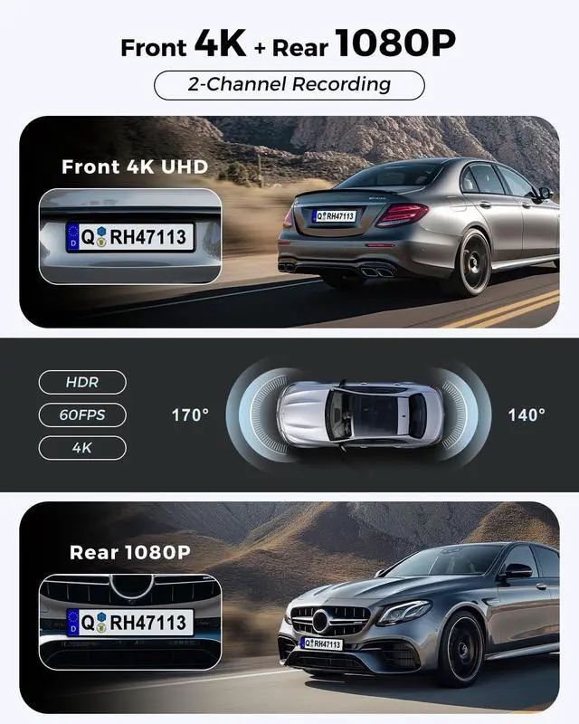 ULTRA HD RECORDING: Dash cam offers 4K+1080P dual-channel recording capabilities, capturing footage simultaneously from both the front and rear cameras. The front camera of the dash camera can also records at 1440P QHD+ resolution at 60fps. With a 170° front wide-angle lens and 140° rear lens, paired with true HDR technology, blind spots are minimized, providing comprehensive coverage for accident evidence.