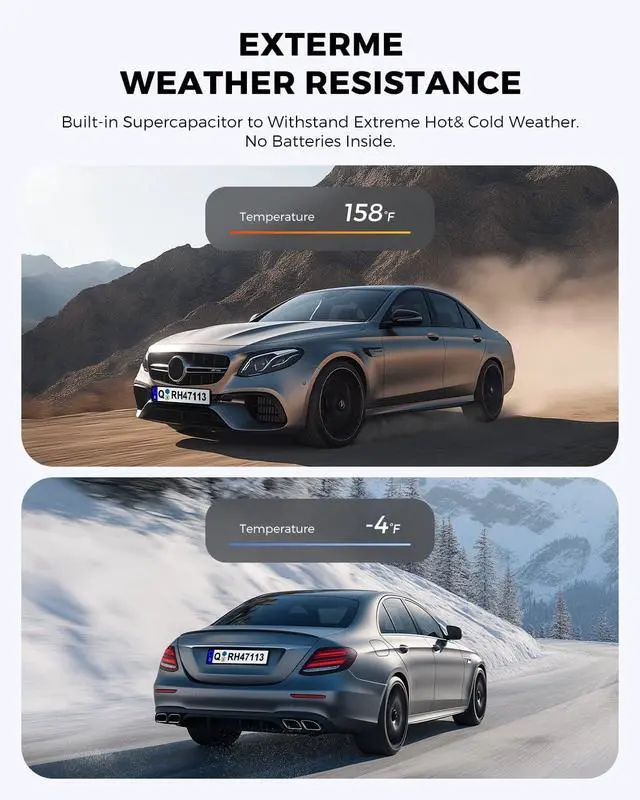 24H PARKING MODE: When your dash cam is connected to the wired kit (buy separately-B0DPQSR7MH), features three parking mode solutions-Auto Event Detection (motion and impact), Time Lapse, and Low Bitrate Recording. When the vehicle is parked, collision event will automatically trigger recording and lock the video. You can travel with peace of mind and check your beloved car at any time.