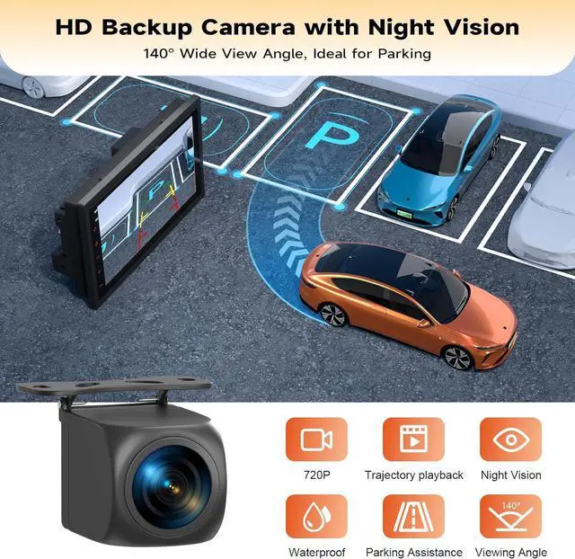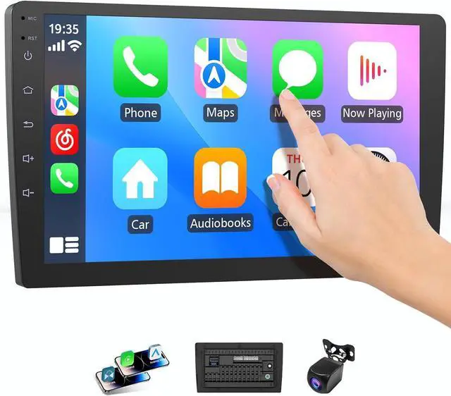 GPS Navigation and Backup Camera: The CarPlay touchscreen features real-time GPS navigation with precise, lag-free directions and smart route suggestions to avoid traffic. It includes a rearview camera that activates automatically when reversing, providing clear visibility. The wireless backup camera connects easily to the reverse light system, ensuring safe parking without the need for professional installation