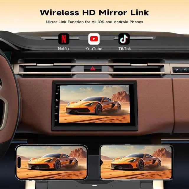 HD Touch Screen & Wired Mirror Link: Apple carplay is equipped with a 9-inch HD screen with a resolution of 1280×720, supporting 1080P high-definition video playback. The vibrant colors and rich details provide an amazing visual experience, whether you' re watching movies, binge-watching shows, or using real-time navigation