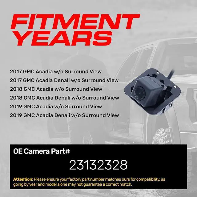 • [For use with]: GMC Acadia, Acadia Denali (2017 2018 2019) w/o Surround View OE Part # 23132328