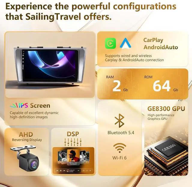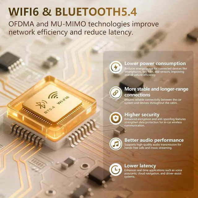 WiFi6&Bluetooth 5.4: The radio supports 5G Wi-Fi6 and mobile hotspots, enhancing connectivity. It features built-in Bluetooth 5.0 for hands-free calls, phonebook synchronization, and music streaming. Once connected to Wi-Fi, it offers access to online maps, and GPS navigation ensures you can navigate effectively from anywhere.