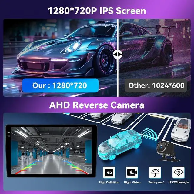 • Built-in Wireless Carplay & Android Auto& Mirror linkBulit in Wireless Carplay Android Auto, support to use smart voice assistant or touch the display, you can make calls, send and receive messages, and enjoy music etc. A smarter, safer and more fun way to use your phone in the car, and keep you stay focused, connected and entertained.car radio support IOS/Android mirror link, mirror your phone's screen on the device's display, You can use your phone's apps, music, videos, etc on the device.