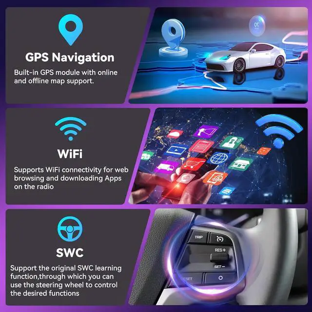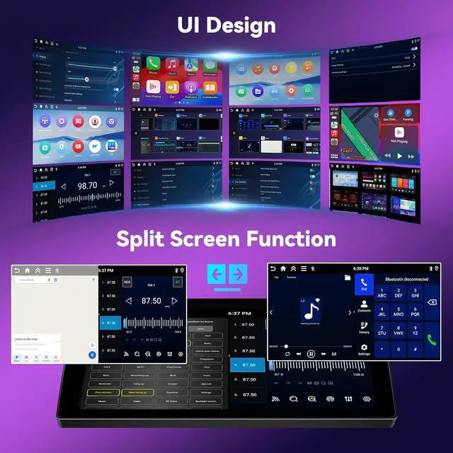 Built-in Wireless Carplay & Android Auto& Mirror linkBulit in Wireless Carplay Android Auto, support to use smart voice assistant or touch the display, you can make calls, send and receive messages, and enjoy music etc. A smarter, safer and more fun way to use your phone in the car, and keep you stay focused, connected and entertained. car radio support IOS/Android mirror link, mirror your phone' s screen on the device' s display, You can use your phone' s apps, music, videos, etc on the device.