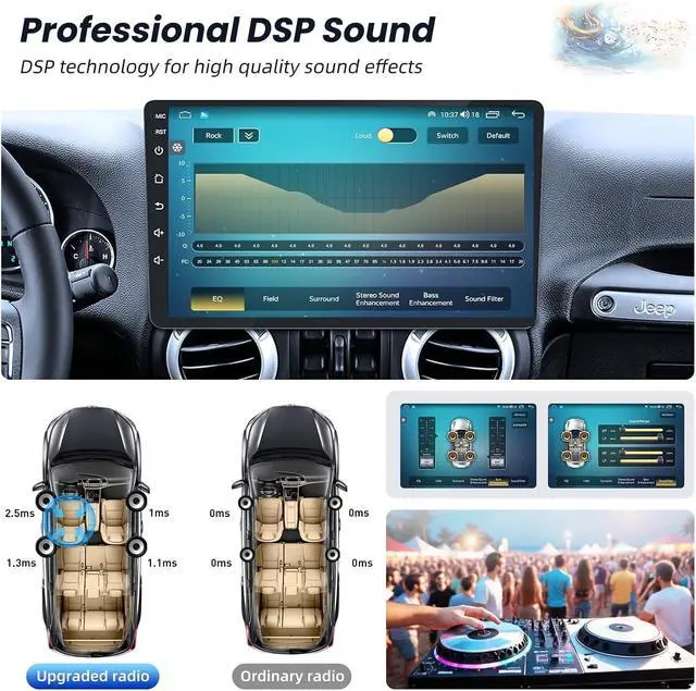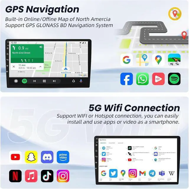 More FeaturesEnjoy crystal-clear audio with the built-in mic and external mic for hands-free calls via Bluetooth 5.0. Listen to FM radio, adjust EQ settings for superior sound quality, and enjoy 1080P HD night-vision when using the backup camera. Wi-Fi connectivity opens up even more entertainment options for your journeys. Whether you' re off-roading or on city streets, the systems stability, large screen, and advanced navigation features will help you stay connected
