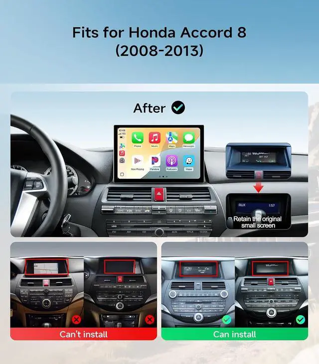 Compatible VehiclesSpecifically designed for Honda Accord models (2008 2009 2010 2011 2012 2013). Includes custom frame kit & dedicated wiring harness for PLUG-AND-PLAY install no console mods needed!