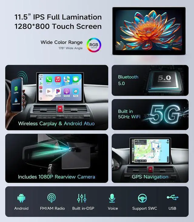 8-Core CPU | 4GB RAM + 64GB Storage5G WiFi & 11.5 " HD touchscreen for smooth operation; factory-standard sizing, no extra accessories needed. Follow the install guide for easy setup and a fresh interior upgrade.