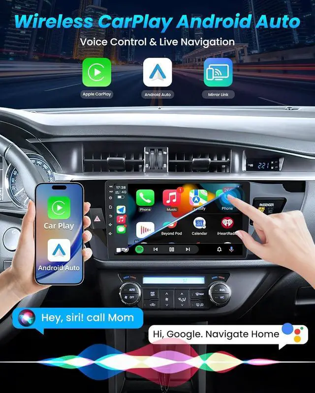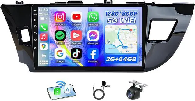Wireless CarPlay & Android AutoCar stereo system for toyota corolla radio 2014 supports USB wired and Bluetooth wireless CarPlay and Android Auto. It also enables you to activate the voice assistant for seamless access to GPS navigation, calls, messages, music, and more while keeping your hands-free for safe driving