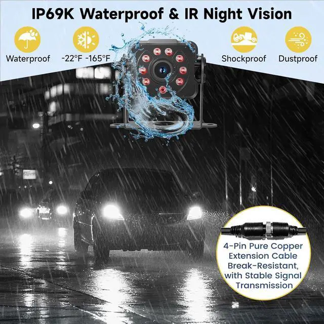 IP69K Waterproof & High Durability Engineered for relentless durability, this IP69K waterproof camera thrives in -22°F to 176°F extremes, delivering crisp in-time 1080P footage whether youre reversing a trailer through rains or navigating desert heat in your pickup.