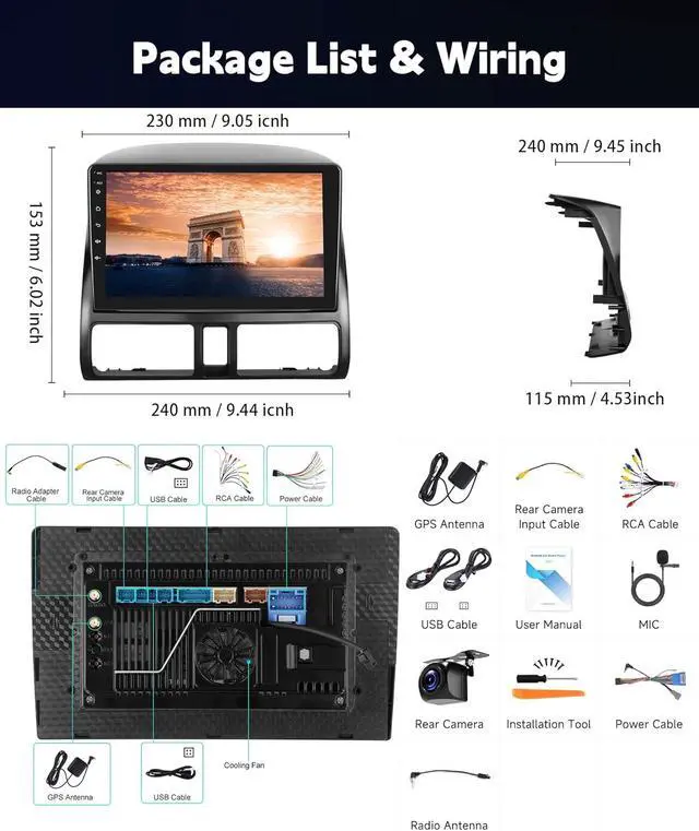 Honda CRV 200-2006: Experience the ultimate in-car entertainment with our 9-inch HD IPS touchscreen car stereo for Honda CRV, featuring a powerful 8-core Qualcomm Snapdragon processor, 4GB RAM+64GB ROM. This car stereo offers scratch-resistant and high-temperature protection for long-lasting durability, (1280x720P) and a wide color gamut with Display P3/SRGB technology for vibrant visuals