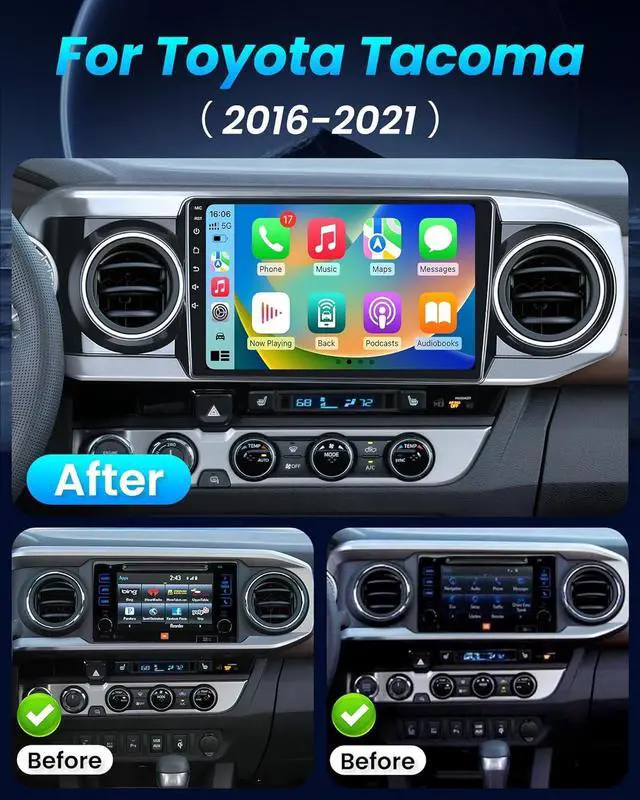 Car Radio Stereo for Toyota TacomaDesigned specifically for Toyota Tacoma 2016 2017 2018 2019 2020 2021, this tacoma car stereo offers a perfect fit without any modifications. Elevate your ride with a premium stereo that blends seamlessly with your vehicle' s original factory look