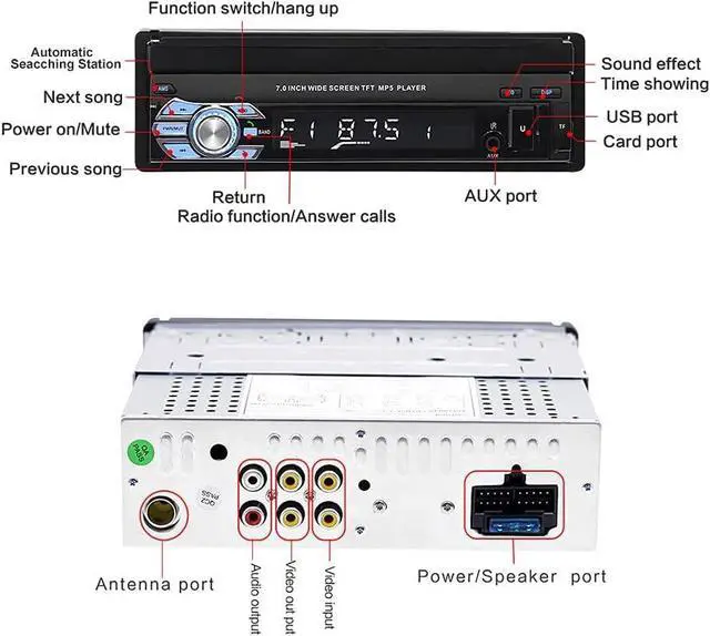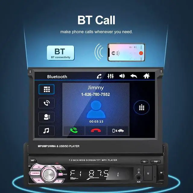 Multifunction 1 din AutoradioThe 7-inch retractable HD screen needs to be pulled out manually, Support TF Card/U-disk, AUX audio input interface can add MP3, cell phones, music players and other audio input