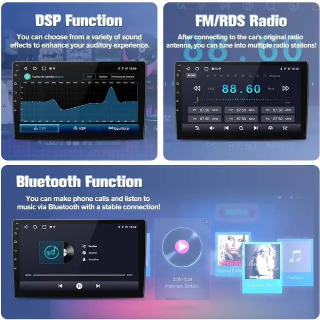 Multimedia & Premium Sound Experience Enjoy immersive audio with built-in DSP tuning, which allows you to customize sound profiles to your liking. Whether you' re listening via Bluetooth, USB, or FM, this car radio offers premium audio quality and multiple playback options for every journey.