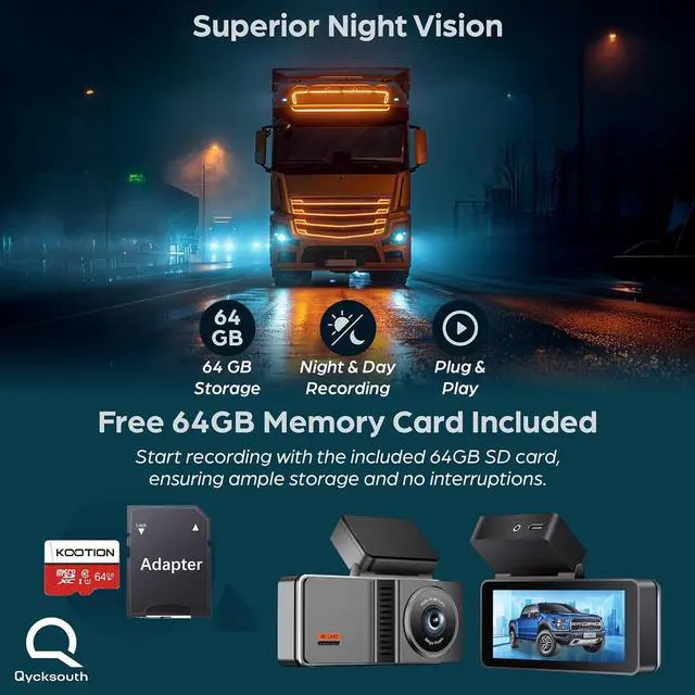 64GB SD Card Included & Type-C Charging A 64GB SD card is pre-included, eliminating the need for an additional purchase. The Type-C car charger includes an extra USB port, allowing you to charge your phone while the dash cam operates.