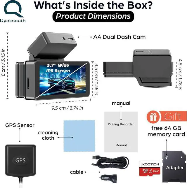3.7 -Inch IPS Screen & Discreet Design The large 3.7 -inch IPS display offers an ultra-clear visual experience and intuitive menu navigation. Its sleek, low-profile design blends seamlessly into your cars interior without obstructing your view.