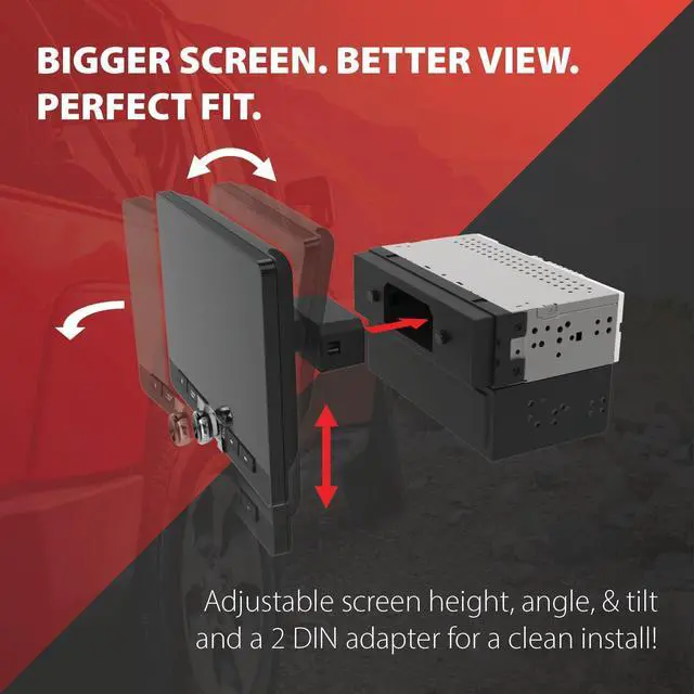 8 INCH TOUCH SCREEN LCD (1, 024 x 600) The 8-inch LCD high resolution adjustable touch screen display provides you with a comfortable viewing experience, is extremely responsive and keeps all your favorite content within fingers reach. The included dash mount adapter allows for single or double din installation.