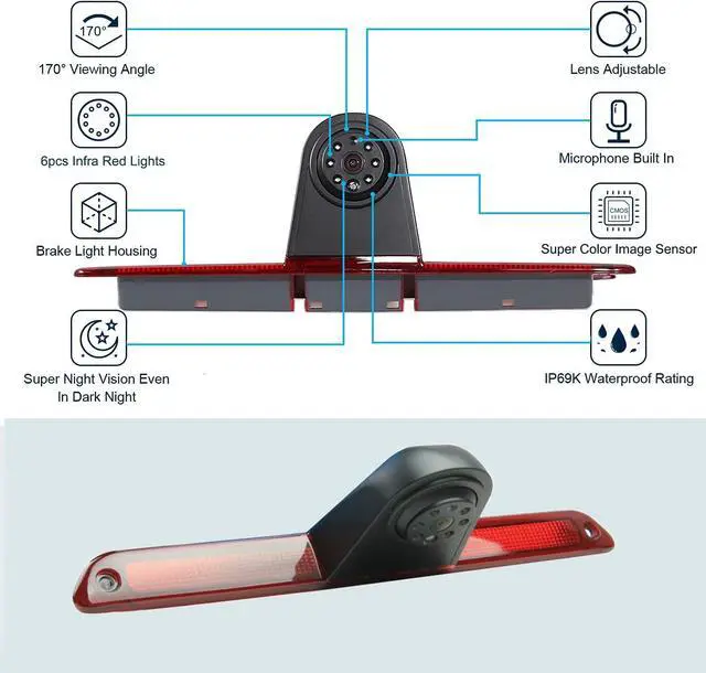 ApplicabilityMercedes Sprinter Brake light camera suit for Sprinter / Crafter brake light camera use for 2007-now, replace your oringinal brake light to this sprinter brake light camera it is very easy to install.
