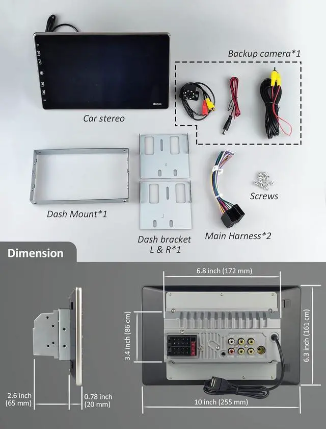 Your Car' s Finest Assistant - Comes along with a complimentary water-proof, wide-angle reverse camera. To ensure a ride that' s both safe and enjoyable, this 10-inch double din car stereo is equipped with radio reception, steering wheel control access, and backup camera support