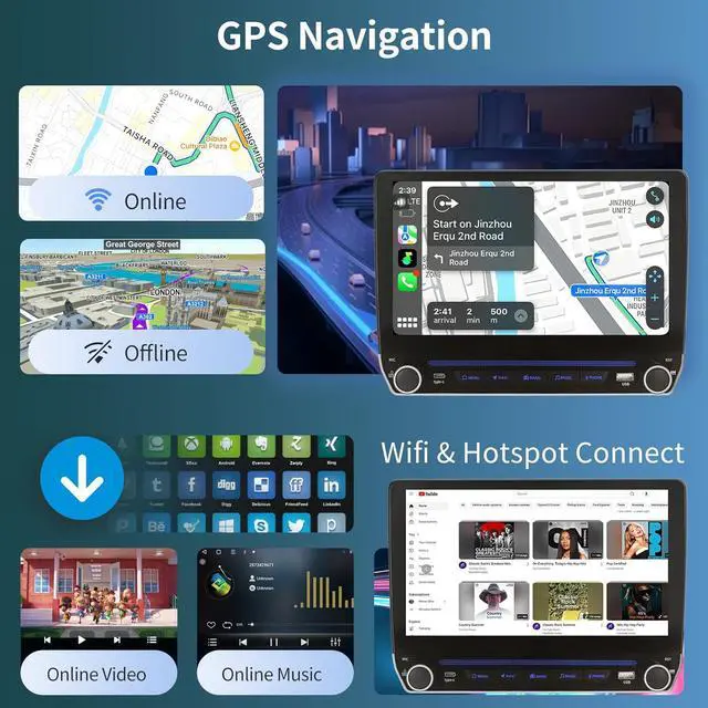 Versatile FunctionsThis car stereo stays connected hands-free via Bluetooth calling and enjoy built-in WiFi for real-time GPS navigation with traffic updates, YouTube/Netflix streaming, and app downloads. Access AM/FM radio presets for quick music access and experience seamless offline/online navigation using Apple Maps, Google Maps, or Waze for optimized routes, turn-by-turn guidance, and congestion avoidanceall designed to keep you safely entertained and informed on the road.