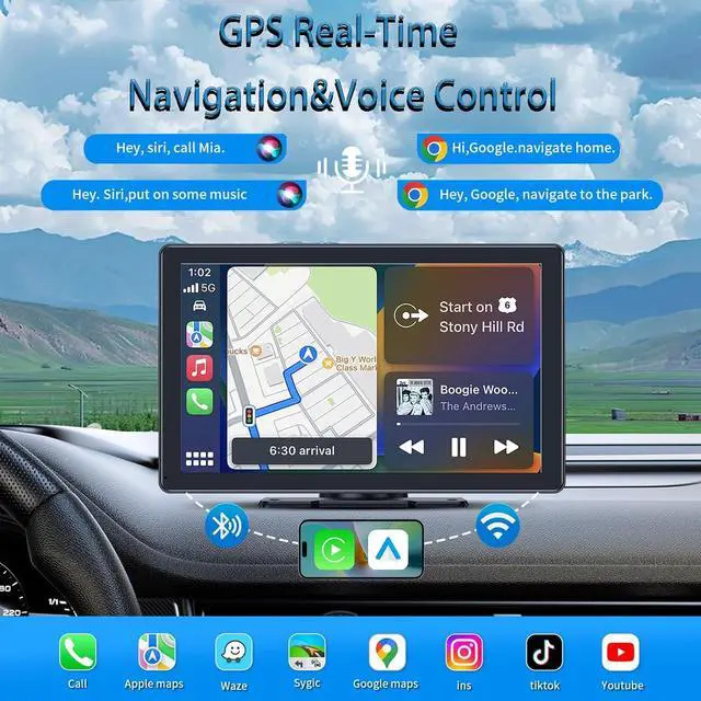 Mirror Link -This android auto screen features a 1600 x 600P HD touchscreen that is highly responsive and supports mirror link functionality for both android and iOS smartphones. It' s perfect for watching movies during long trips. Easily sync apps like YouTube, TikTok, Netflix, and GPS. Whether you' re using an apple carplay screen for car compatibility or android auto, this portable apple car play screen delivers an exceptional viewing experience