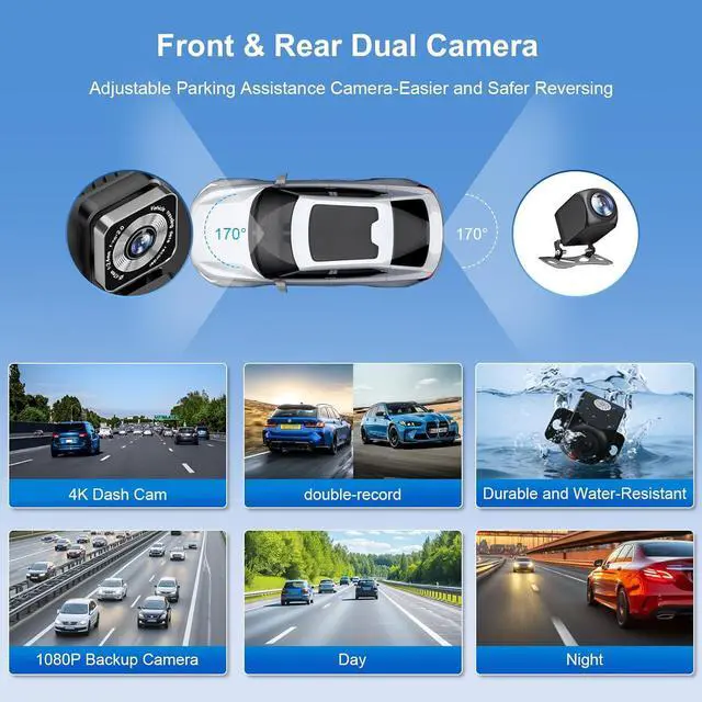 Upgraded Chipset, HD Backup Camera & Reliable After-Sales Support Equipped with a 64GB high-speed TF card, this system supports loop recording and HD capture. The HD backup camera, featuring a 170° ultra-wide, waterproof design with advanced WDR/AHD technology, automatically activates in reverse for added safety. Plus, our dedicated after-sales team is ready to provide professional technical support and prompt service for a worry-f ree ownership experience