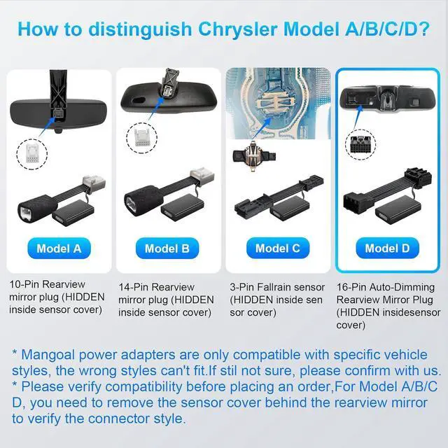 Mangoal also sells two other types of Dashcam Power Adapters, Suitable for a wider range of vehicle models, fit for Chrysler 3-Pin (Model