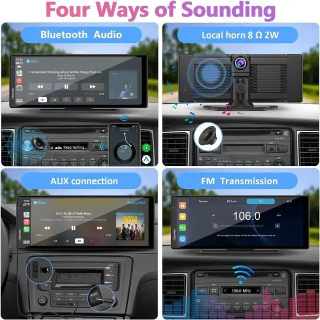 Siri & Voice ControlCarpuride w903 utilizes a 82W speaker that offers powerful, heavy bass and ultra-clear vocals, ensuring clear and true sound. It also features a built-in mic function that allows for smoother phone calls, music listening, text notifications, and even voice control through your device' s G00gle or Siri assistant.