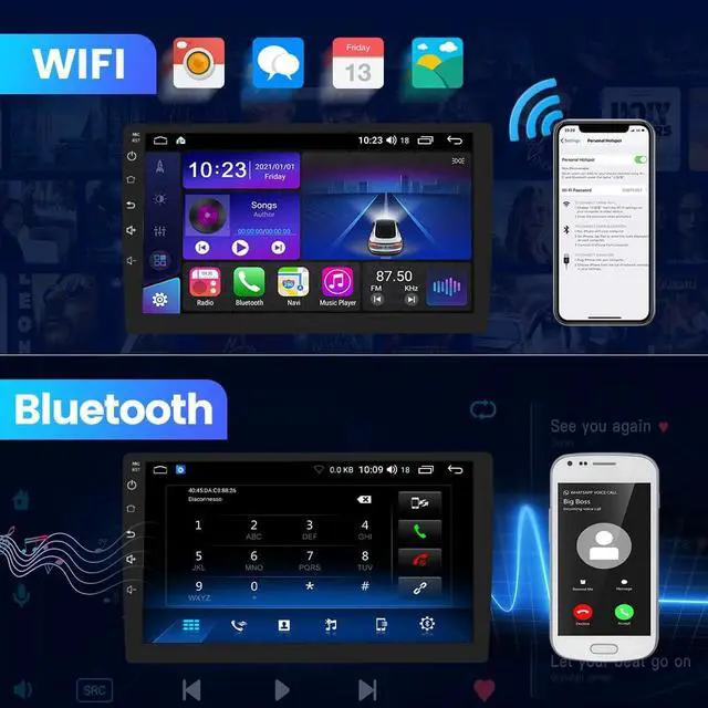 Bluetooth Hands-Free and Steering Wheel ControlsBluetooth hands-free function is suitable for all Android and iOS phones. With the steering wheel controls function, you can make calls, adjust the volume or change songs more safely. Also, if you think the called voice is low, you can connect the external microphone in the package. It will provide a safer experience for your driving.