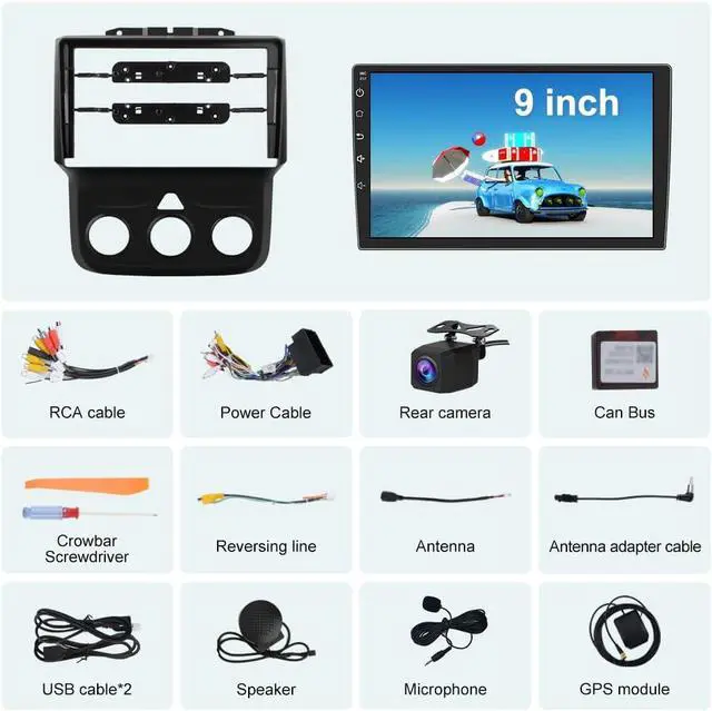 Radio Compatible for Dodge Ram 2013-2019 1500 2500 3500 Only fit Manual AC9 inch HD 1080P capacitive touch screen radio, with Android 13 system, has 2GB RAM and 64GB ROM (Many similar radios are 16GB ROM), can be used for Dodge Ram 2013-2019 1500 2500 3500, it comes with all the cables and frame you need, please check these years before you buy. (Including CAN-BUS).