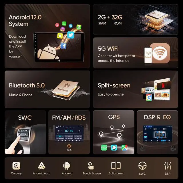 Bluetooth & FM RadioThis car stereo comes with Bluetoothsupporting phonebook sync, hands-free calls, and mobile music streaming. For FM radio functionality, you can transmit radio signals to the car stereo via FM to retain the original car audio experience; this lets you tune in for real-time traffic updates, news broadcasts, weather forecasts, and more.