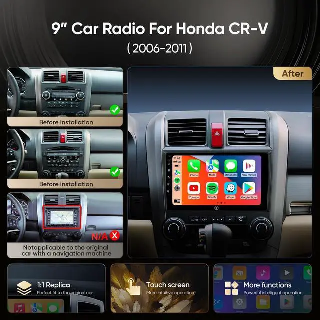 Applicable ModelsThe radio Screen is compatible with Original Factory Style Car radio For Honda CRV. Please check the year, dimensions and shape of the center console of your vehicles before purchasing. If you are not sure, you can send messages or picture to us, we will give you advice.