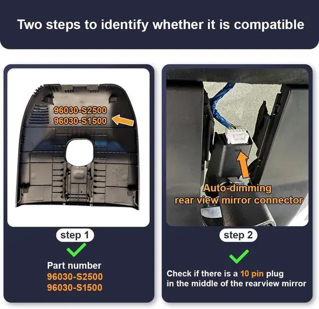 S2500: Fitcamx dash camera looks like an integral part of the vehicle. No trimming need to be done, No wires to splice into or run. A clean factory look! Suitable for Hyundai Santa Fe 2021-2023 vehicle styles, and please confirm the original part number ends with S1500 or S2500 before ordering