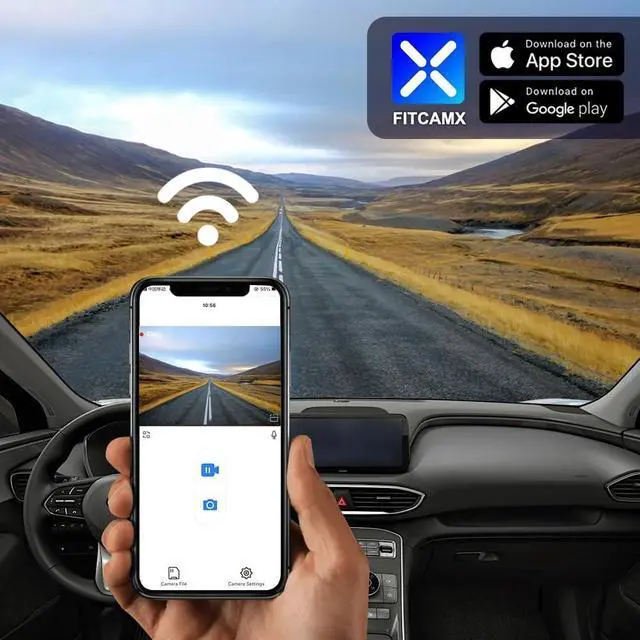 Easy to Set & WiFi: By connecting the built-in WiFi, you can view real time video while on the way, and FITCAMX APP enables you to download important footage to phone if needed, so can watch video whenever you want even not in car. *NO NEED to keep WiFi connected as the camera will auto-record after car starts, no affect the use of CarPlay/Bluetooth