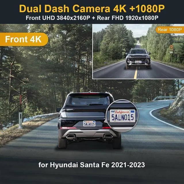 Front 2160P+Rear 1080P Video: Fitcamx dual dash cam presents ultra-high quality and smooth video, at Front 2160P and rear camera 1080P. And the wide dynymic range technology can adjust the exposure to record accurate-color footage even in low light environment. Your safety driving at night will be greatly improved