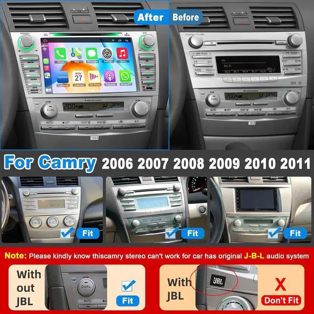 Compatible Models & Years --This car radio with DVD is fit for Toyta Cary 2006 2007 2008 2009 2010 2011. (Note: Please kindly know this camry stereo can' t work for car has original J-B-L audio system)